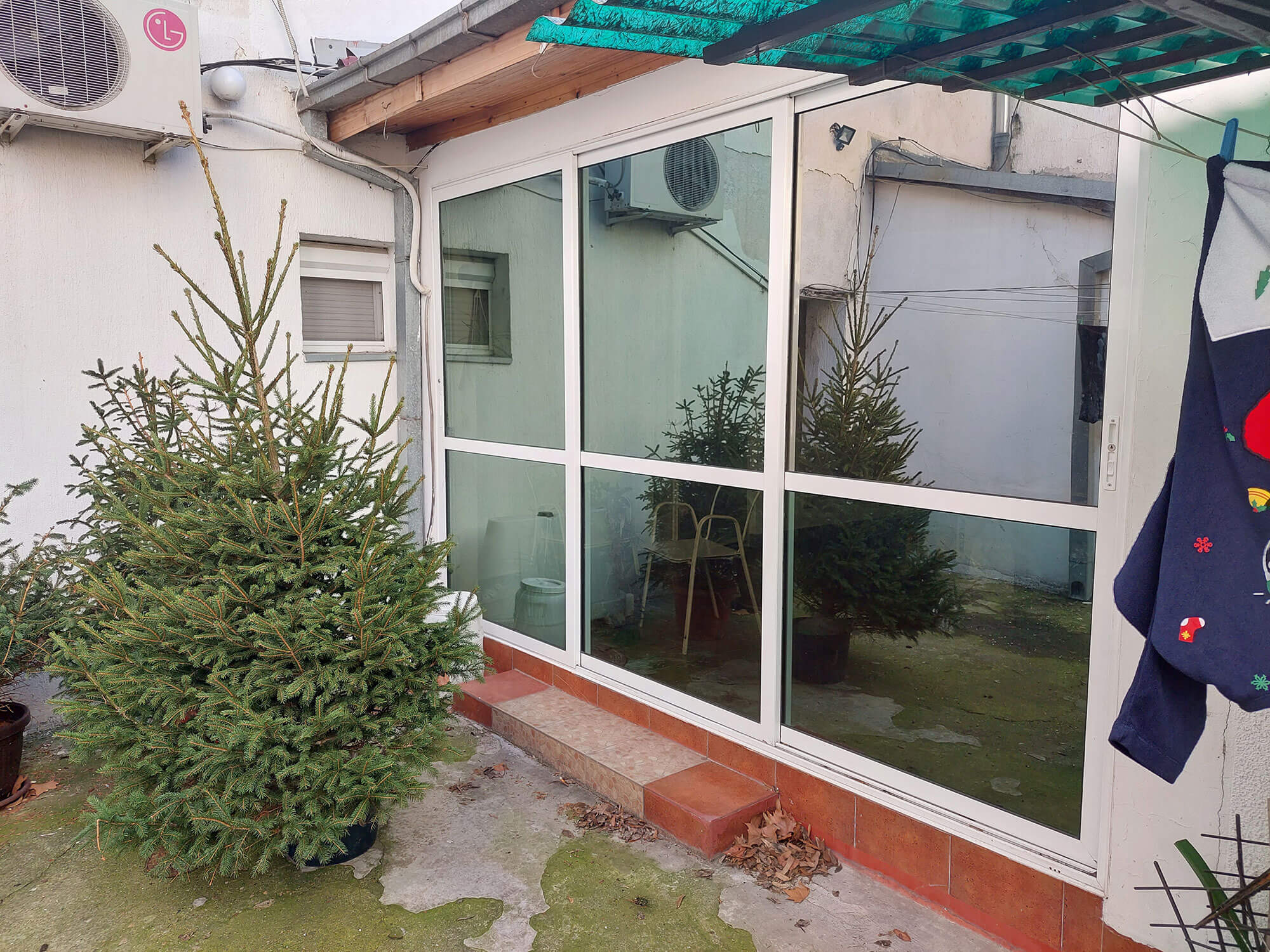 Stan površine 87m2 (knjižno 49m2, ostalo predato za legalizaciju) nastao spajanjem dva manja stana površine 30m2 i 19 m2 .